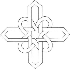 Begin anywhere on the cross with your finger and follow its path until you come to the beginning.